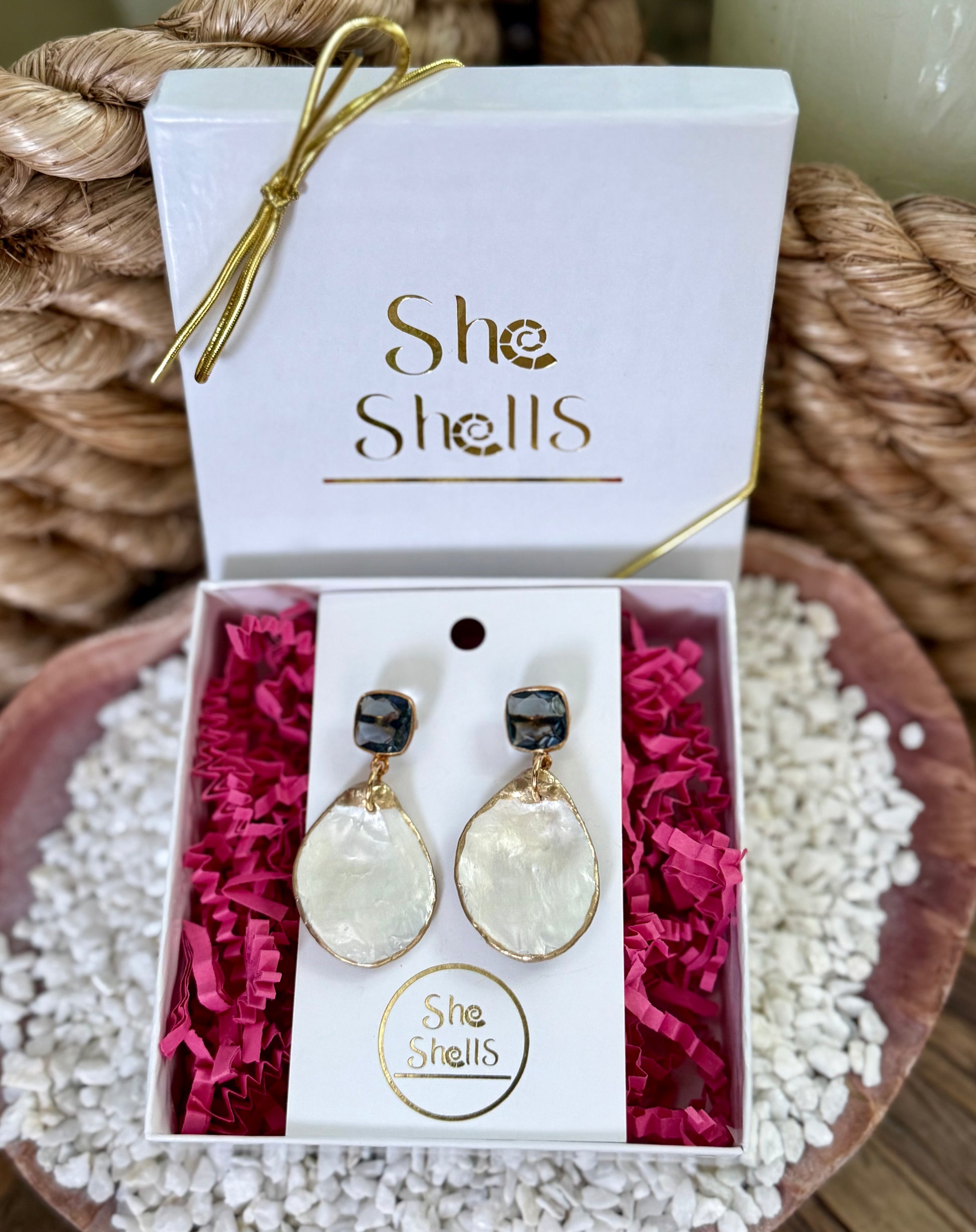 *Please note this is a sample picture. Earrings size and shape will be very similar but may not be exactly as photo since each oyster shell is unique.*
