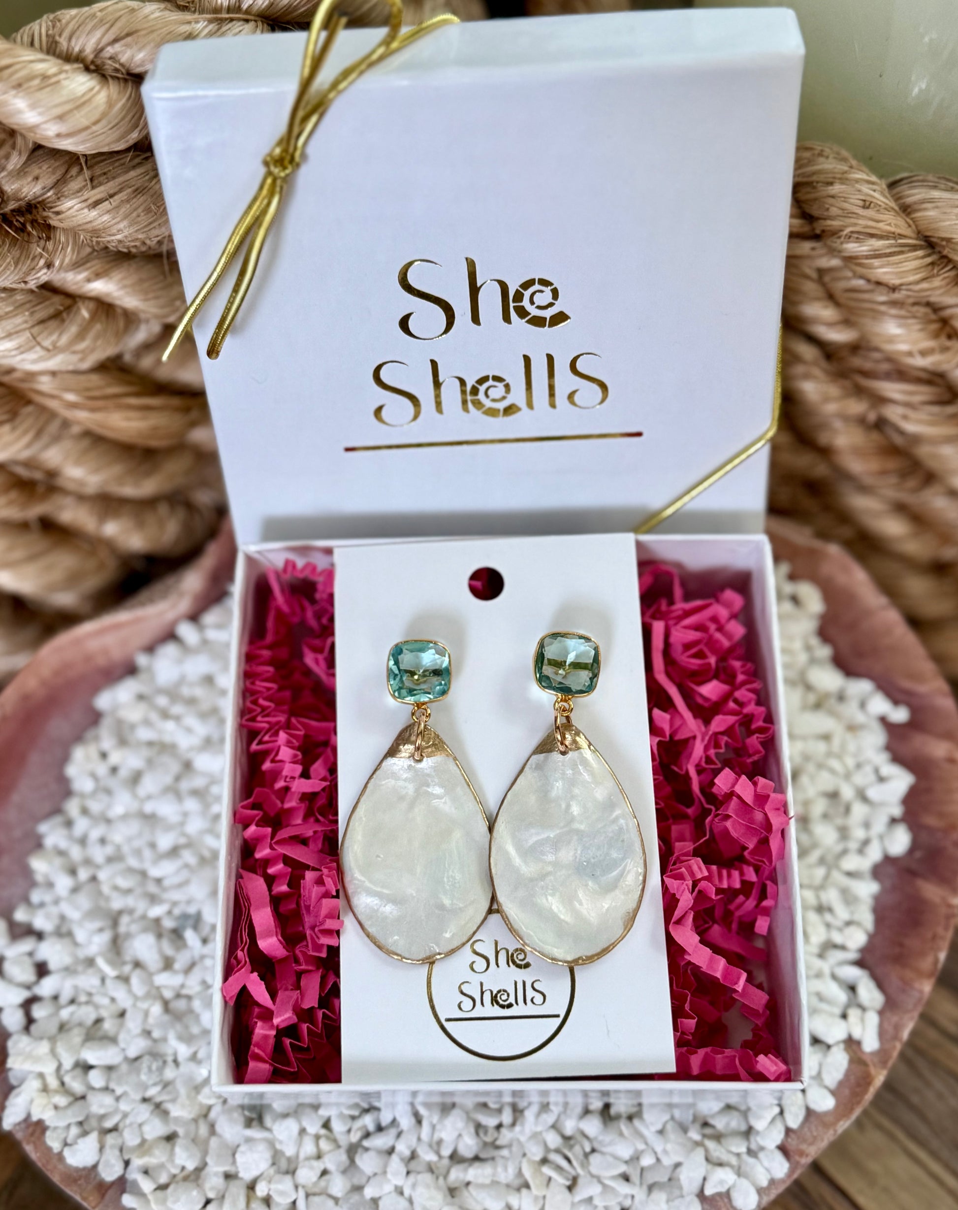 Take your coastal look up a notch with our Coastal Bougie Collection! These shells have a hint of pearl finish on the front and the backside is left natural and are paired with gorgeous aqua gems for an upscale look. The shells range from 1.5-2” tall. Signature gift wrap is always included!