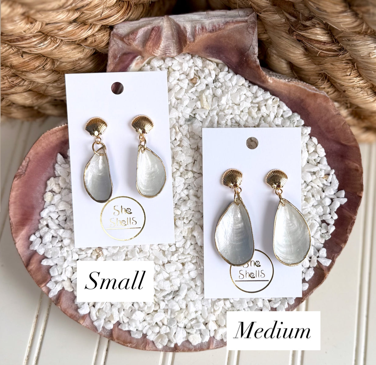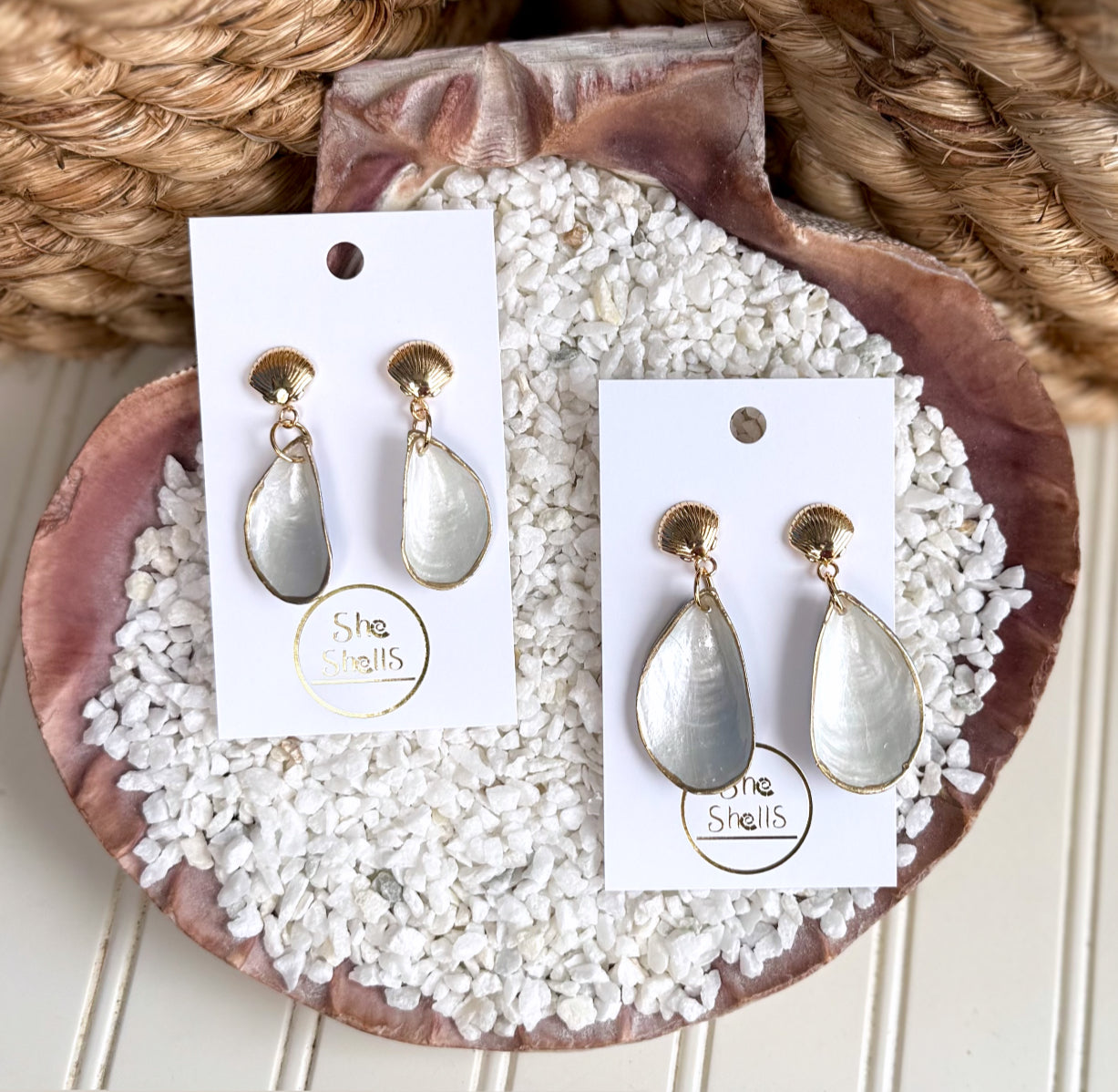 From our Amelia Island Collection, these SheShells are a great neutral option and will add elegance to any outfit! The shells have a pearl finish on the front and are topped with a gold shell design. Approximately 1.5-2.5” tall, the shells are almost weightless so we suggest picking a size based on size preference, as weight is so minimal from the smallest to largest.
