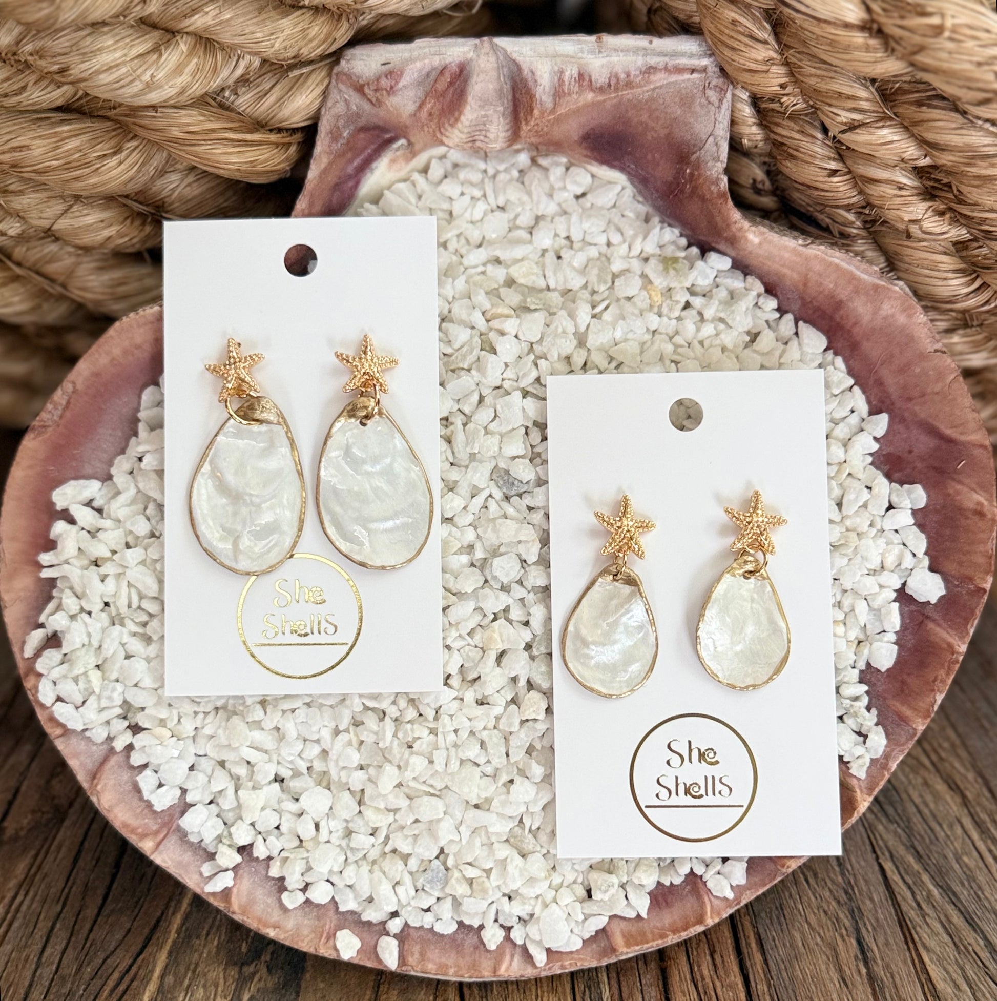 From our Amelia Island Collection, these SheShells are a great neutral option and will add elegance to any outfit! The shells have a pearl finish on the front. Approximately 1.5-2.5” tall and very lightweight!